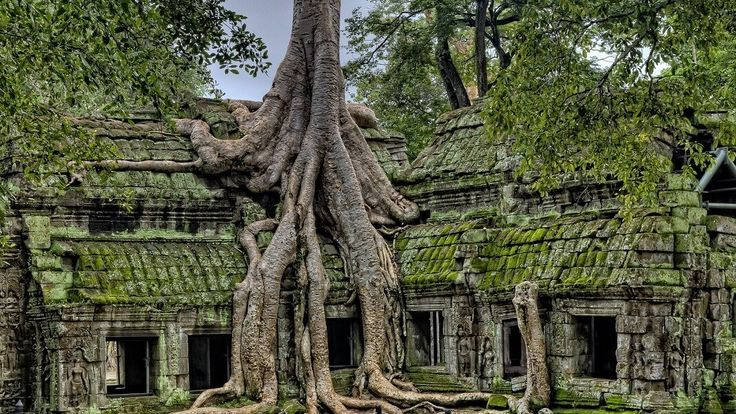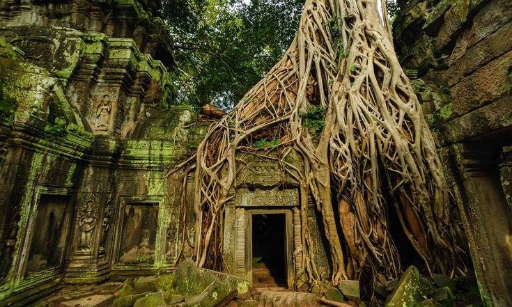 Explore the famous tree-root-covered ruins